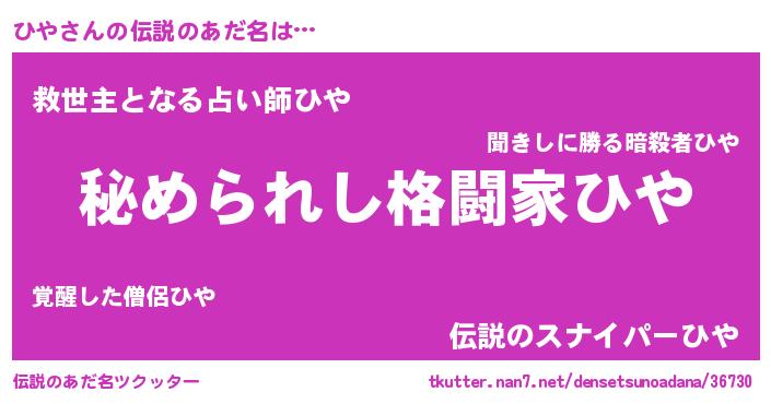 | ヒーロー風カッコイイあだ名 | 『ウルトラ戦士ヒヤ』『ウルトラひやマン』 |