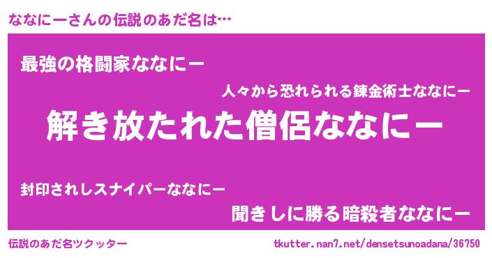 | ヒーロー風カッコイイあだ名 | 『銀牙騎士ナナ』『ウルトラななにーマン』 |