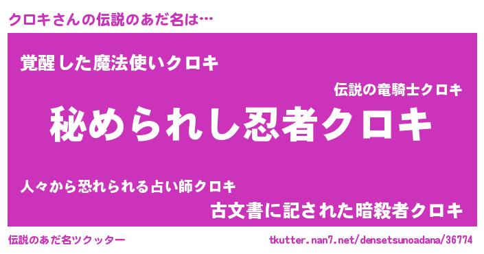 | ヒーロー風カッコイイあだ名 | 『ウルトラクロキマン』『幻影騎士クロ』 |