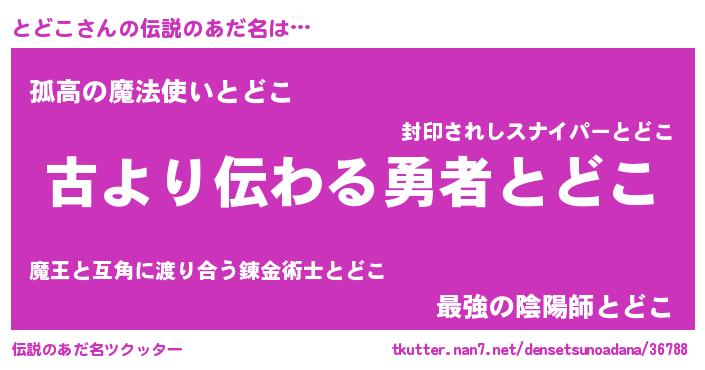 | ヘコむあだ名 | 『とどこ(苦笑)』『とどを』 |