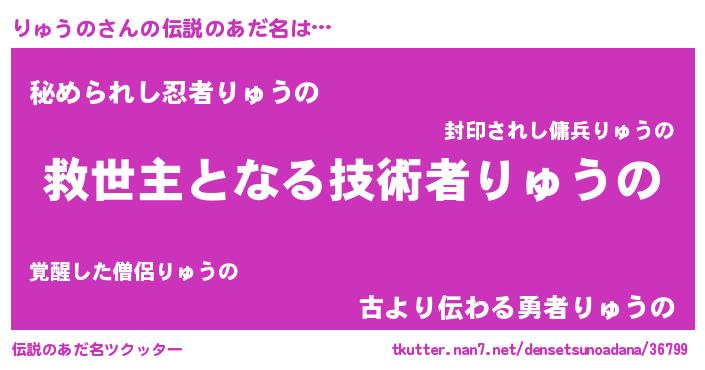 | ヒーロー風カッコイイあだ名 | 『究極戦士リュウノ』『仮面リュダー』 |