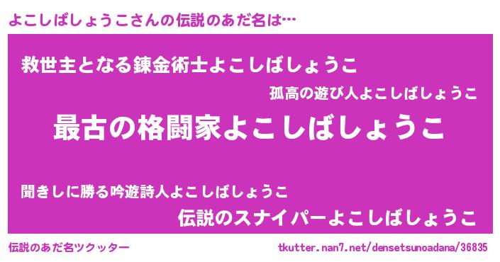 | 男性向けラノベタイトル風あだ名 | 『転生したらよこしばしょうこだった件』 |