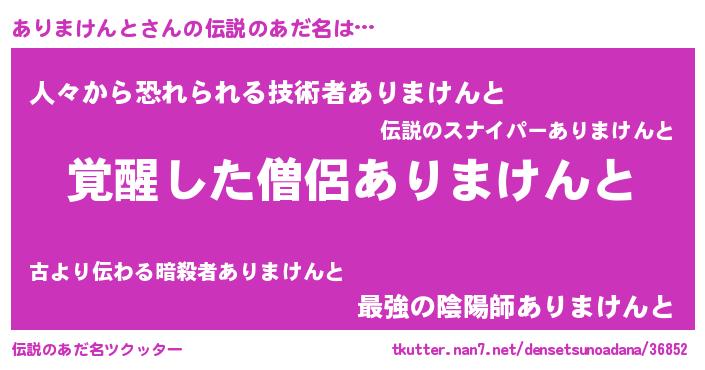 | 胡散臭い通販商品みたいなあだ名 | 『あなたにだけ特別に提供する限定10本のレアな日本酒…その名も「ありまけんと」』 |