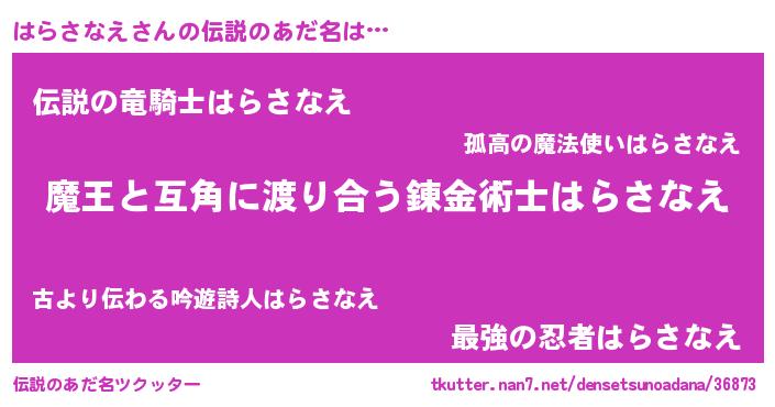 | 女子向けラノベタイトル風あだ名 | 『はらさなえ恋絵巻』 |