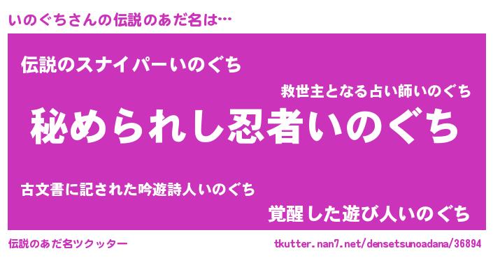 | ヒーロー風カッコイイあだ名 | 『ウルトラいのぐちマン』『仮面イノダー』 |