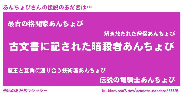 | 肩書あだ名 | 『あんちょび担任』『あんちょび総理大臣』 |