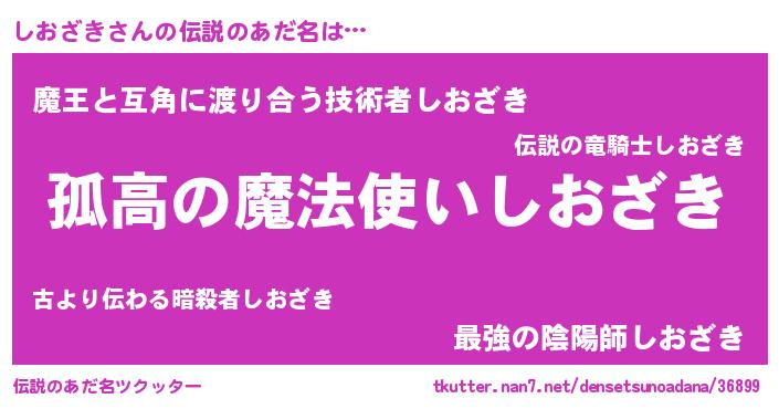 | ヒーロー風カッコイイあだ名 | 『魔戒騎士シオ』『友情の使者しおざき』 |