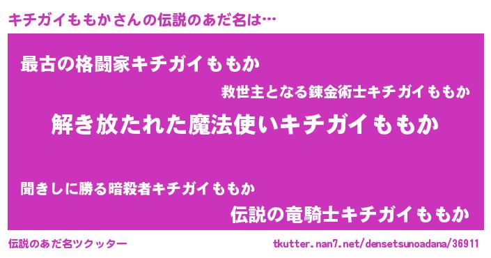 | ポケモン風あだ名 | 『ヒキチガイモモカ』『キチキング』 |