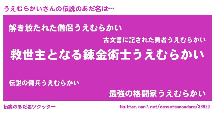 | 意味不明あだ名 | 『自称うえむらかい』 |