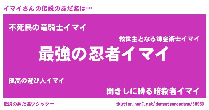 | ヒーロー風カッコイイあだ名 | 『ウルトライマイマン』『スーパーイマイ』 |