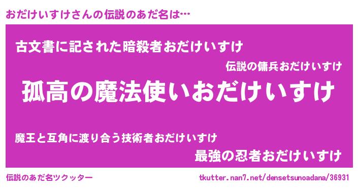| 意味不明あだ名 | 『とにかく怪しいおだけいすけ』 |
