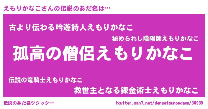 | 胡散臭い通販商品みたいなあだ名 | 『信頼と実績のネックレス…その名も「えもりかなこ」』 |