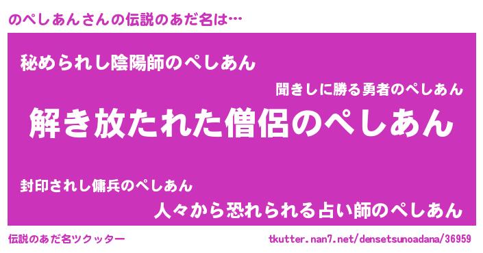 | 意味不明あだ名 | 『とにかく怪しいのぺしあん』 |