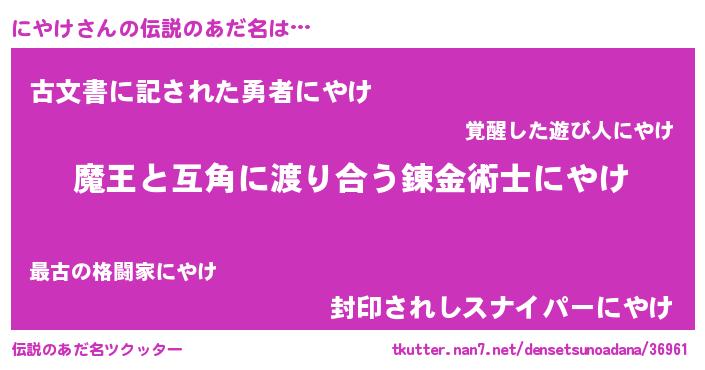 | ヒーロー風カッコイイあだ名 | 『愛の使者にやけ』『ネオニヤケ』 |