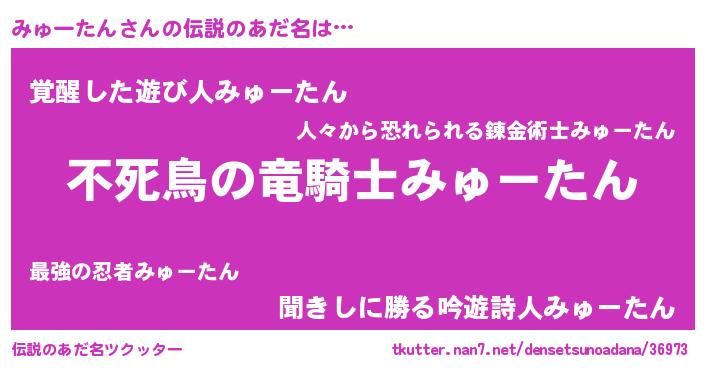| 意味不明あだ名 | 『自称みゅーたん』『ペロリンみゅーたん』 |