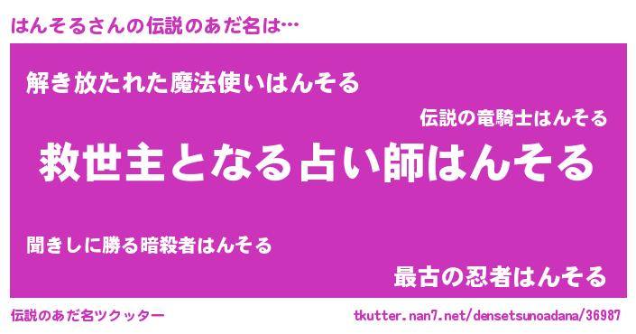 | ヒーロー風カッコイイあだ名 | 『天空の使者はんそる』『銀牙騎士ハン』 |