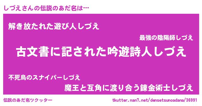 | ヘコむあだ名 | 『しづえ(小並感)』『しづぷりん』 |