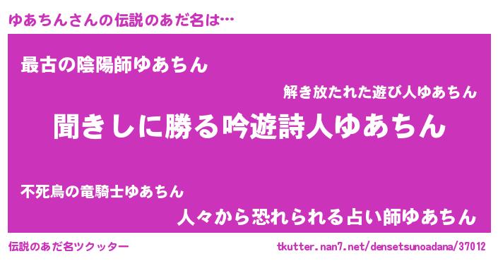 | 意味不明あだ名 | 『永久保存ゆあちん』『自称ゆあちん』 |