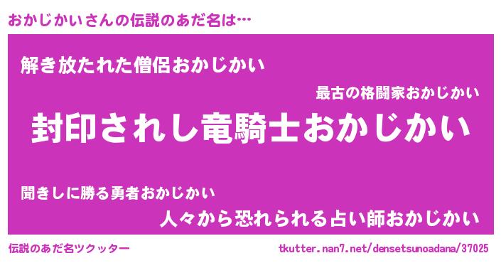 | ヒーロー風カッコイイあだ名 | 『スーパーオカジカイ』『銀牙騎士オカ』 |
