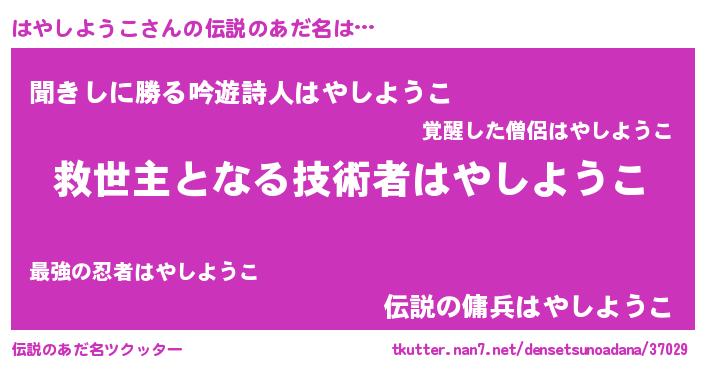 | ヒーロー風カッコイイあだ名 | 『天空の使者はやしようこ』 |