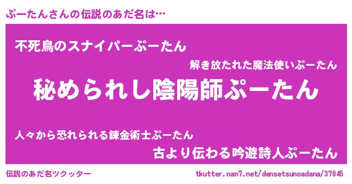 | ファンタジー風あだ名 | 『エターナルプータンー』『プーフェル』 |