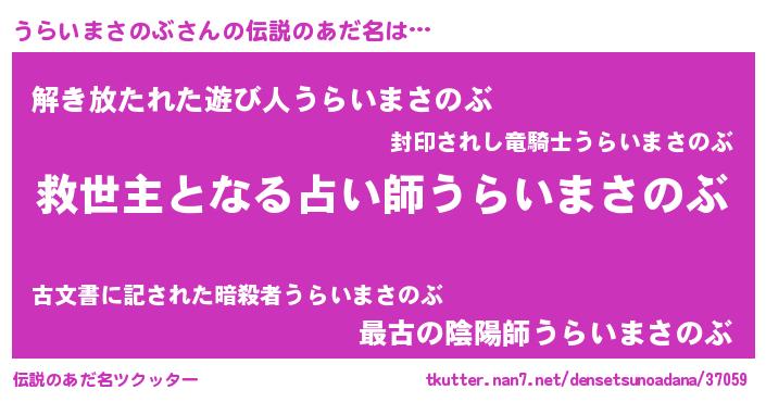 意味不明あだ名 | 『住所不定無職うらいまさのぶ(68歳)』 |