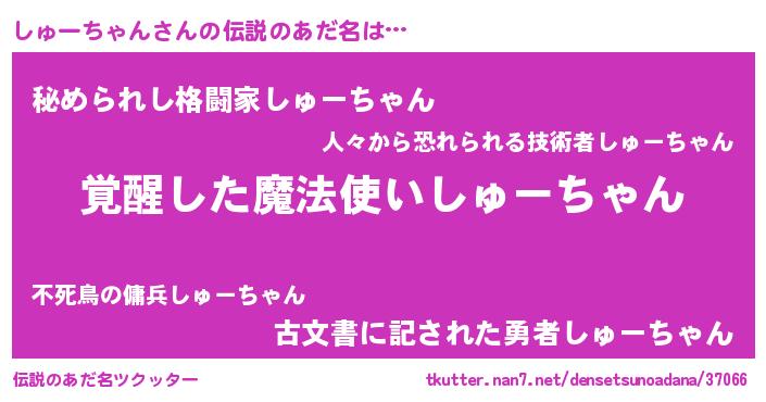 | ヒーロー風カッコイイあだ名 | 『幻影騎士シュ』『ネオシューチャン』 |