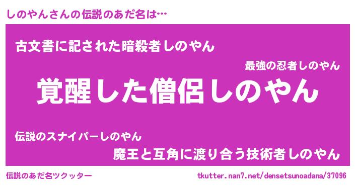 | 女子向けラノベタイトル風あだ名 | 『しのやん様がみてる』『闇のしのやん』 |