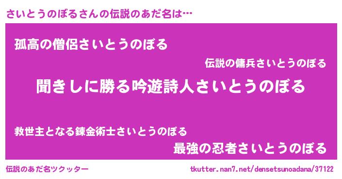 | ヒーロー風カッコイイあだ名 | 『仮面サイダー』『ネオサイトウノボル』 |