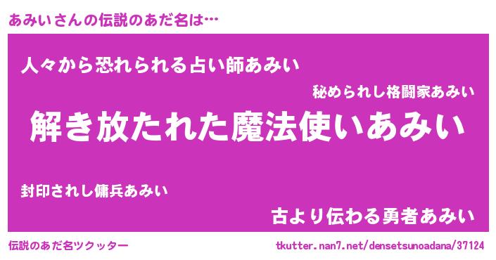 | ヒーロー風カッコイイあだ名 | 『銀牙騎士アミ』『愛の使者あみい』 |