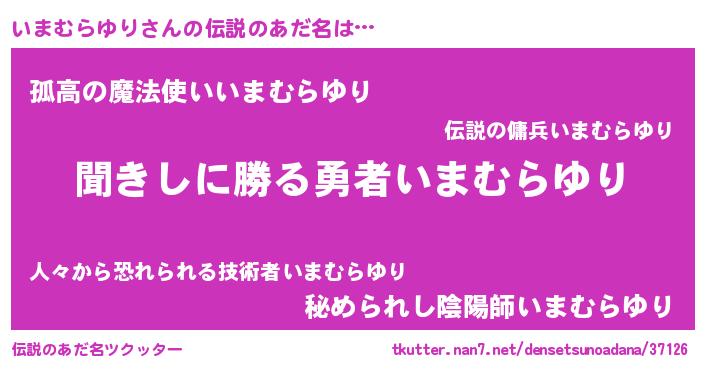 | ヘコむあだ名 | 『いまむらゆり(震え声)』『いまお』 |