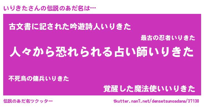 | ヒーロー風カッコイイあだ名 | 『正義の使者いりきた』『ネオイリキタ』 |