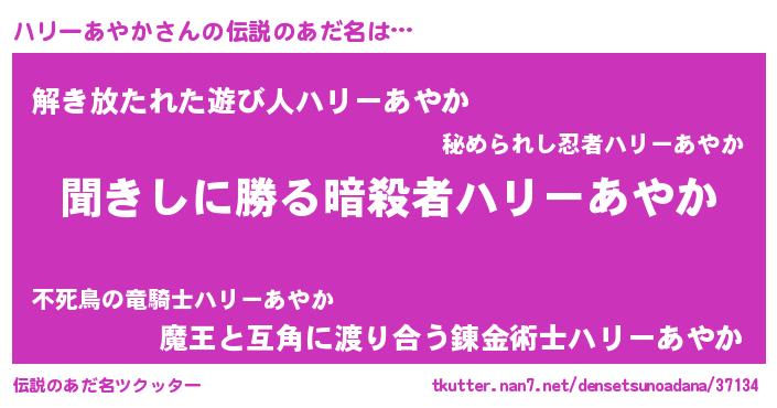 | 男性向けラノベタイトル風あだ名 | 『ハリーアヤカスレイヤー』 |