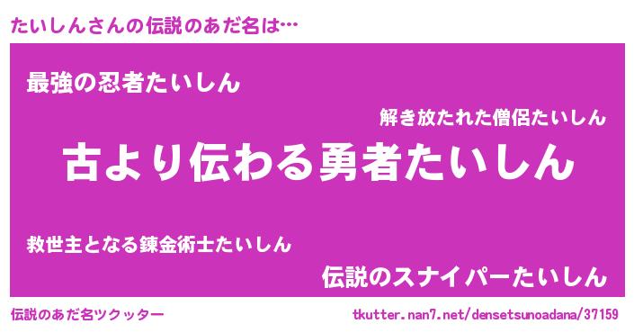 | 男性向けラノベタイトル風あだ名 | 『Re:たいしんから始める異世界生活』 |