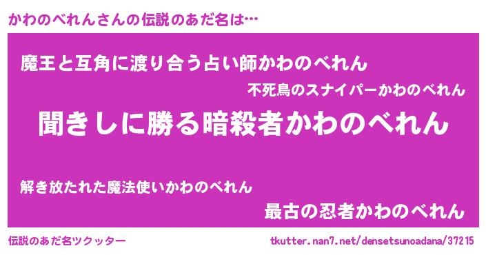 | 男性向けラノベタイトル風あだ名 | 『かわのべれんという概念が存在しない退屈な世界 』 |