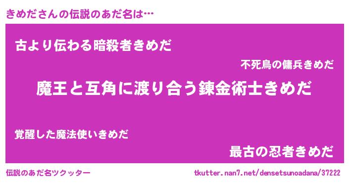 | 男性向けラノベタイトル風あだ名 | 『きめだに滅ぼされるだけの簡単なお仕事です』 |