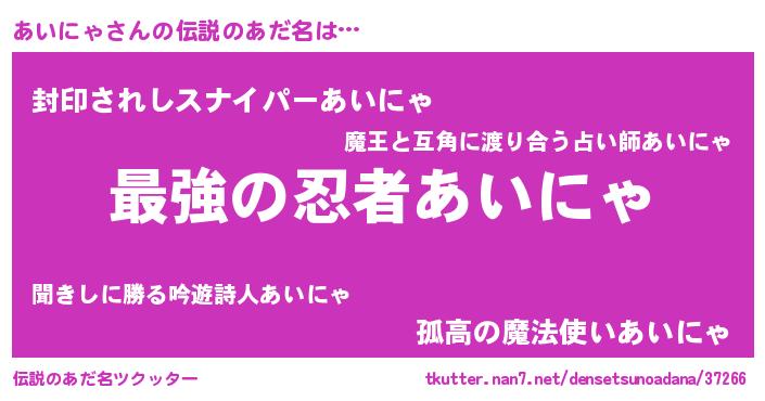 | ヒーロー風カッコイイあだ名 | 『仮面アイダー』『ウルトラあいにゃマン』 |