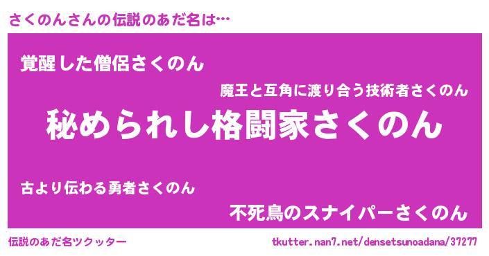 | 意味不明あだ名 | 『さくのんフォーエバー』『自称さくのん』 |