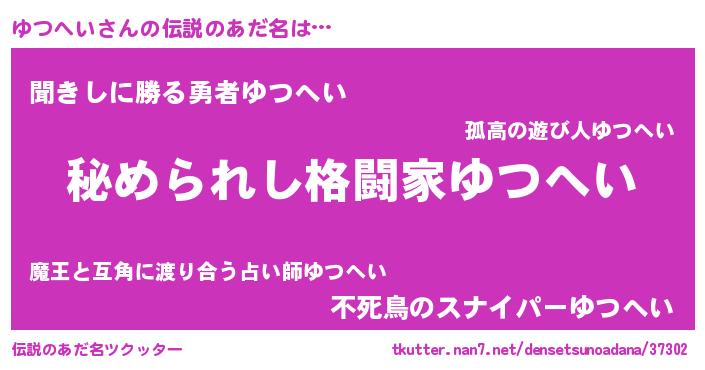 | ヒーロー風カッコイイあだ名 | 『ウルトラゆつへいマン』『ネオユツヘイ』 |