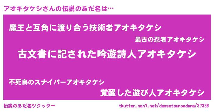 | ヒーロー風カッコイイあだ名 | 『仮面アオダー』『ネオアオキタケシ』 |