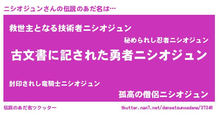 | ヘコむあだ名 | 『ニシオジュン(苦笑)』『ニシを』 |