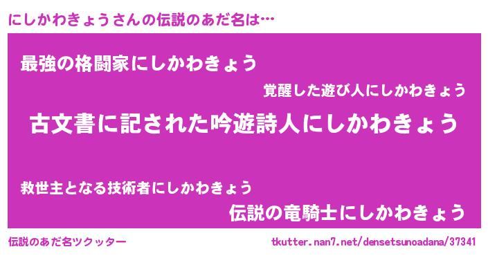 | 意味不明あだ名 | 『自称にしかわきょう』 |