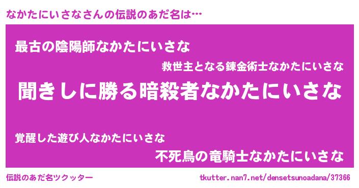 | 意味不明あだ名 | 『永久保存なかたにいさな』 |