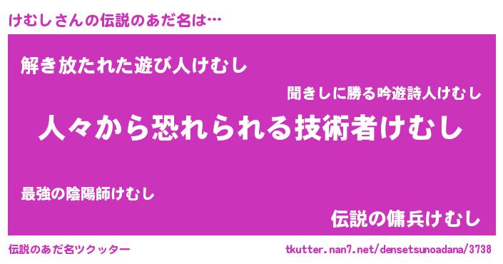 | ヒーロー風カッコイイあだ名 | 『正義の使者けむし』『魔戒騎士ケム』 |