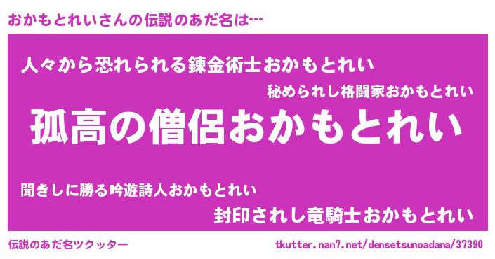 | 男性向けラノベタイトル風あだ名 | 『ダンジョンにおかもとれいを求めるのは間違っているだろうか』 |