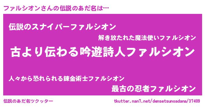 | ヘコむあだ名 | 『ファルシオン(笑)』『ファもー』 |