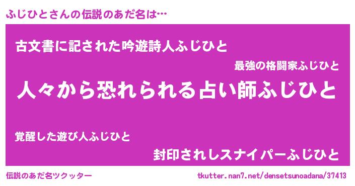 | ヒーロー風カッコイイあだ名 | 『正義の使者ふじひと』『ネオフジヒト』 |