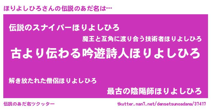 | 男性向けラノベタイトル風あだ名 | 『転生したらほりよしひろだった件』 |