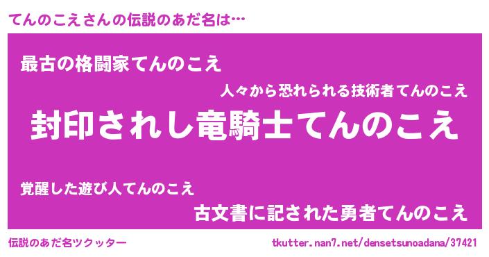 | 意味不明あだ名 | 『住所不定無職てんのこえ(8歳)』 |