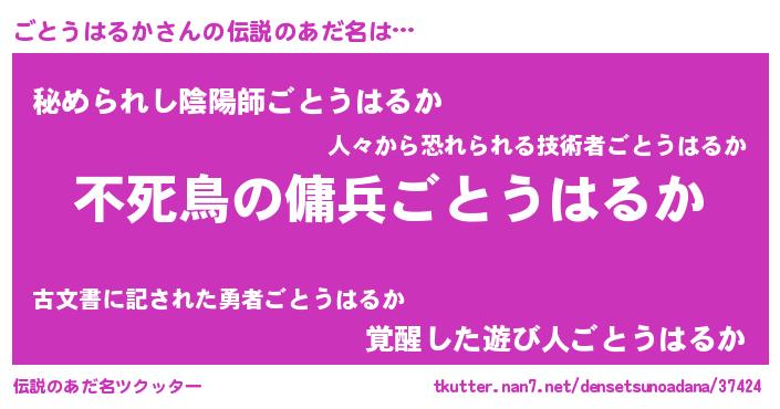 | ヒーロー風カッコイイあだ名 | 『スーパーゴトウハルカ』『天弓騎士ゴト』 |